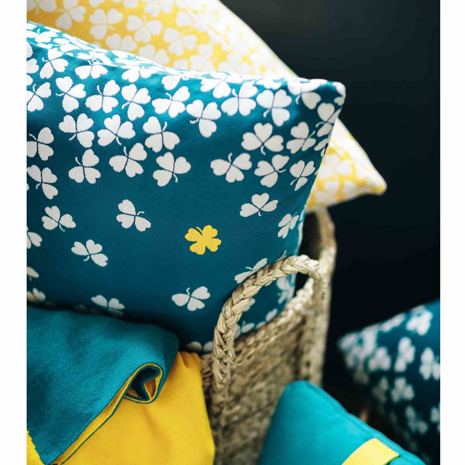 Un coussin outdoor dont le tissage en relief dans la pure tradition Jacquard donne vie au parterre de trèfles et invite à trouver celui à 4 feuilles qui s’y cache. Regardez bien, vous trouverez peut-être votre bonheur!