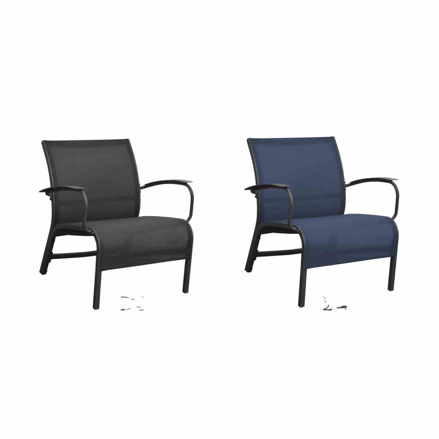 La structure du fauteuil est associée à une toile Polyester Enduit Perforée (TPEP). Moderne et pleine de qualités, cette toile tendue est d’une solidité remarquable. Vous allez adorer le confort de ce fauteuil bas au dossier légèrement incliné.