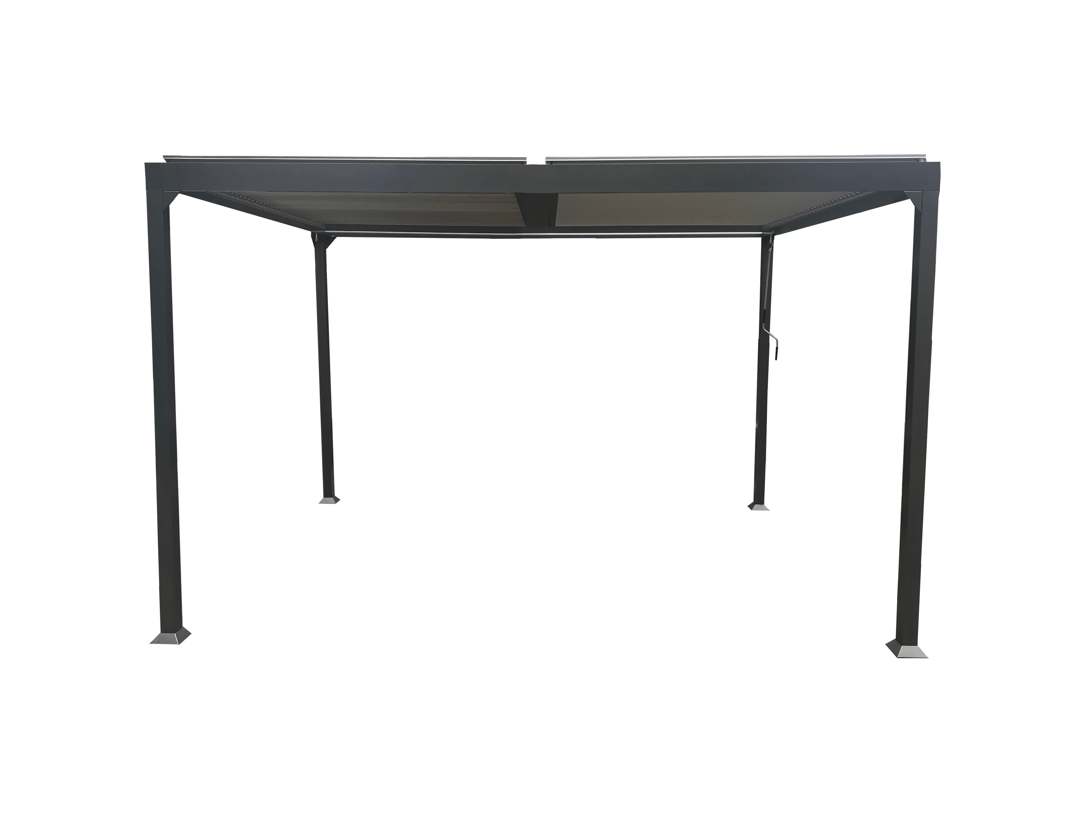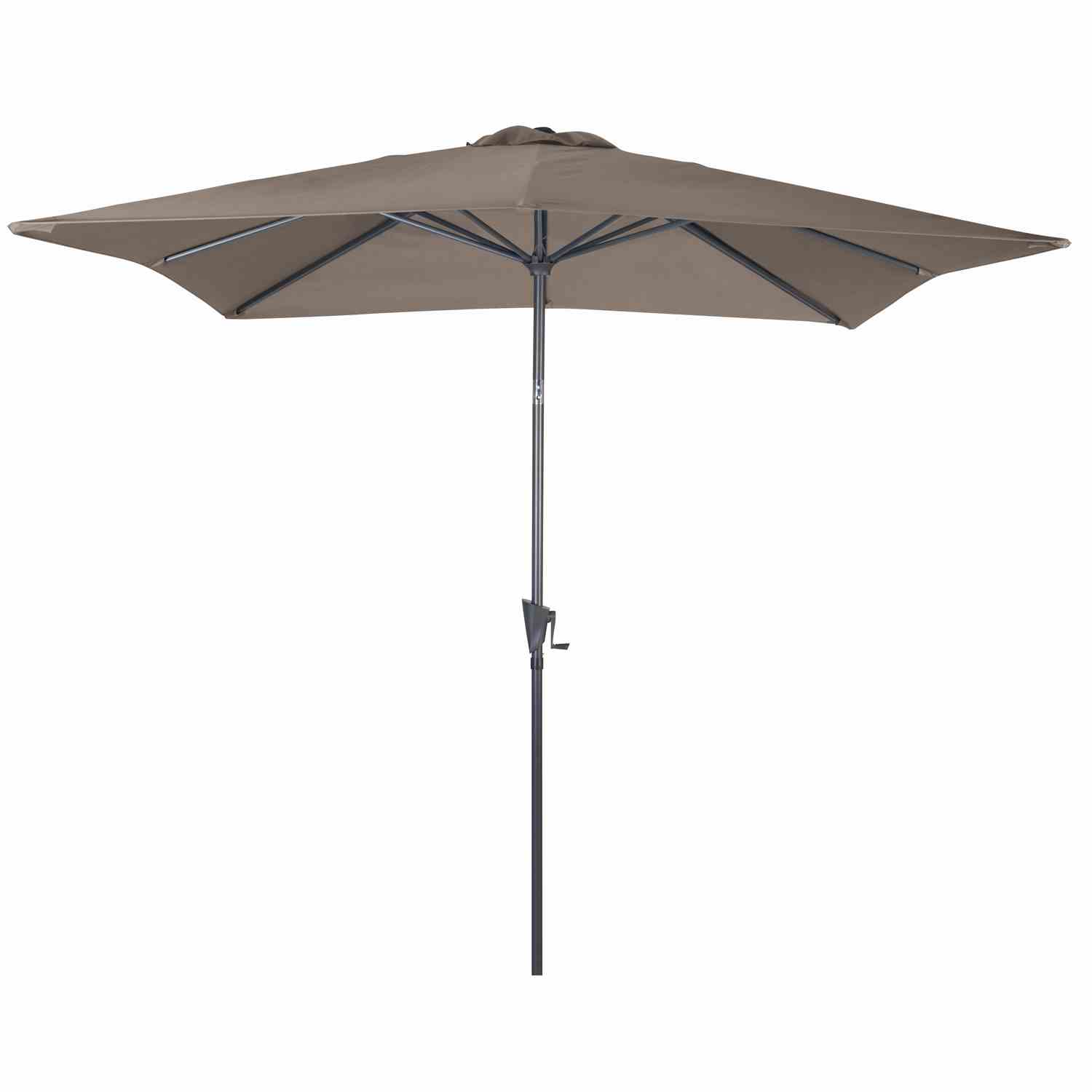 Le mât aluminium est associé à 8 baleines en acier, ils sont traités époxy. Le déploiement de la toile se réalise à l’aide d’une manivelle.