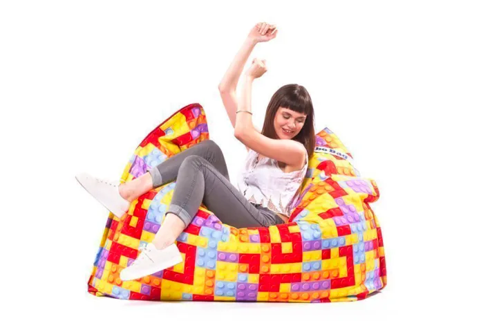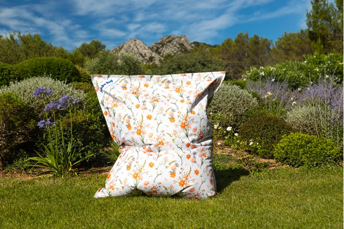 Coussin géant d’extérieur rempli de milliers de billes qui le rendent ultra confortable pour se détendre au bord de la piscine.