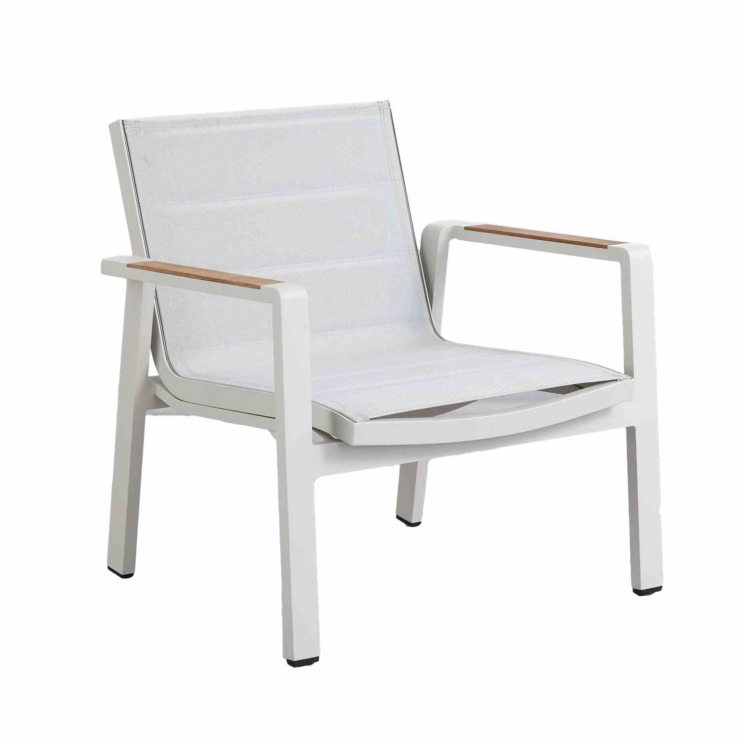 Moderne et demandant peu d’entretien le salon NOFI 2.0 sera idéal pour être exposé en plein air. Sa structure en aluminium ne craint pas la rouille et les assises et dossiers en batyline résistent à l’eau et aux UV. Caractéristiques techniques : Structure en aluminium, plateau de table en céramique et accoudoirs en teck, assise et dossier en batyline(tissu résiné).