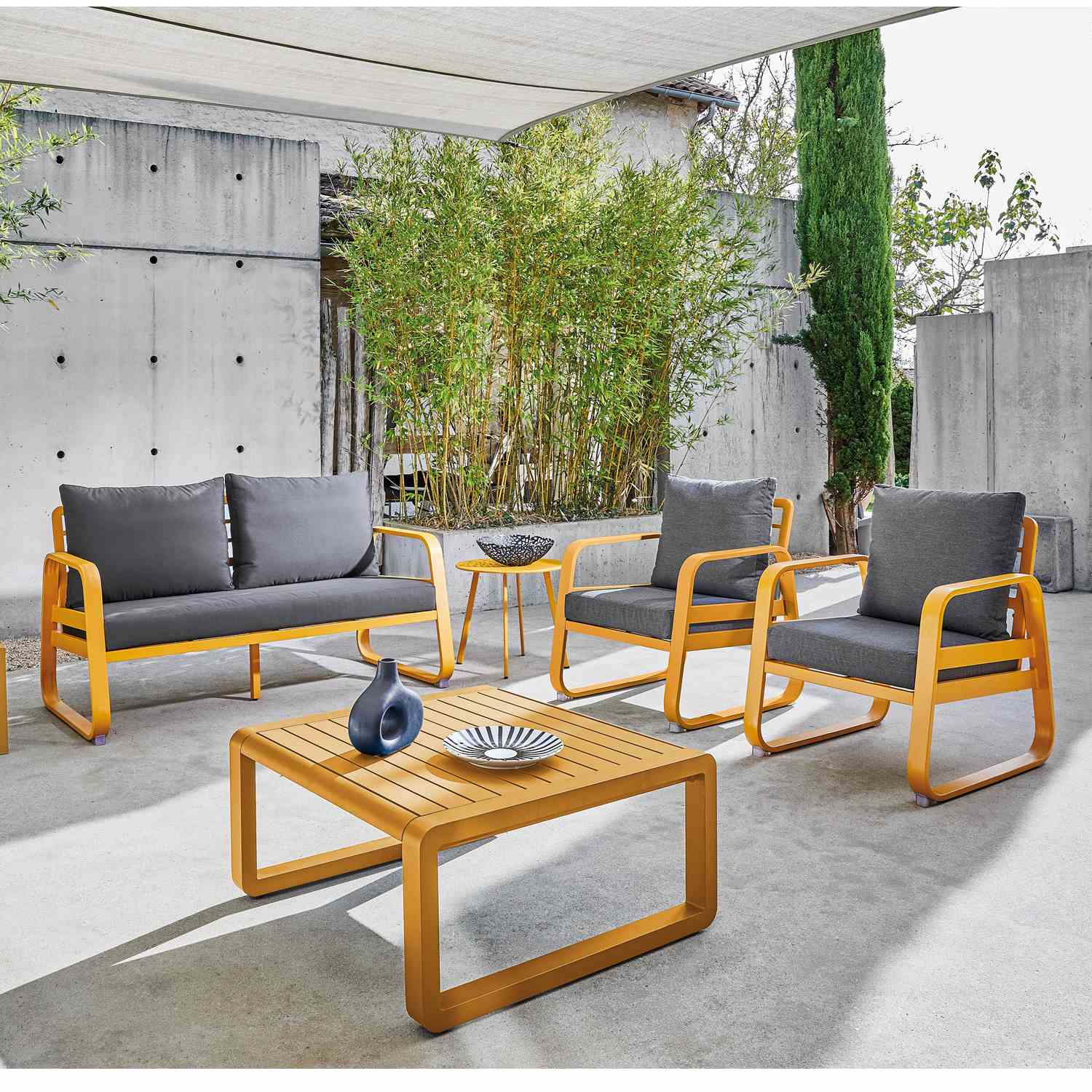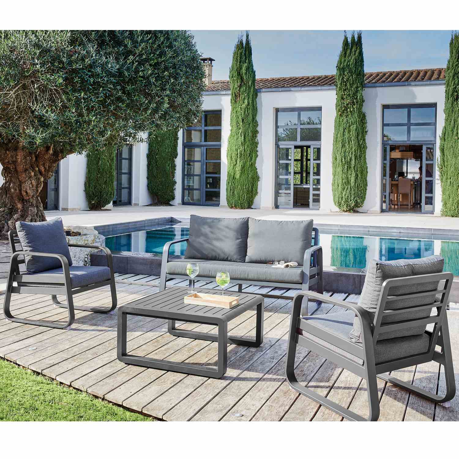 Le salon Tonio vous apportera durabilité et confort. La toile acrylique des coussins sont déperlants et entièrement déhoussables. Composé d’un canapé de 2,5 places, de 2 fauteuils et d’une table basse.