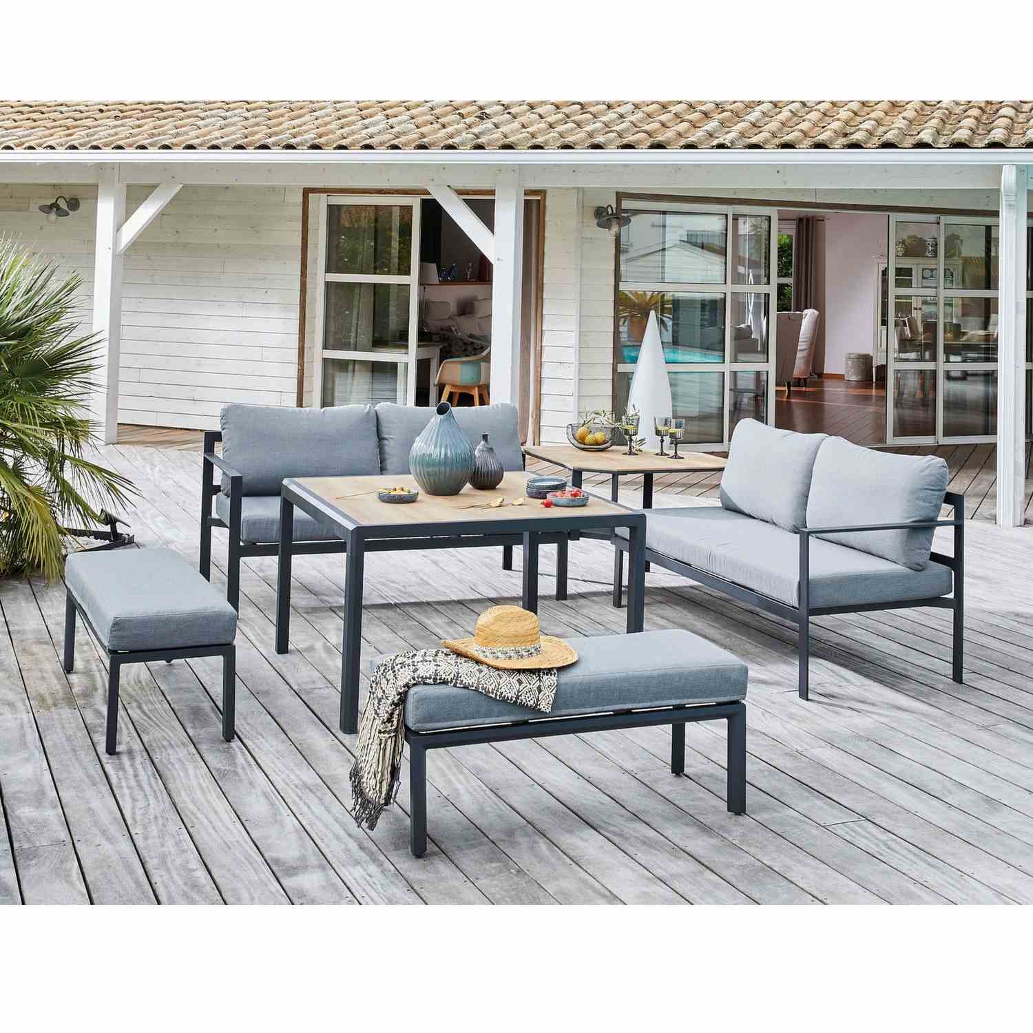 Les dimensions plus que généreuses du set Royan IV feront de lui le centre d’attraction de votre terrasse