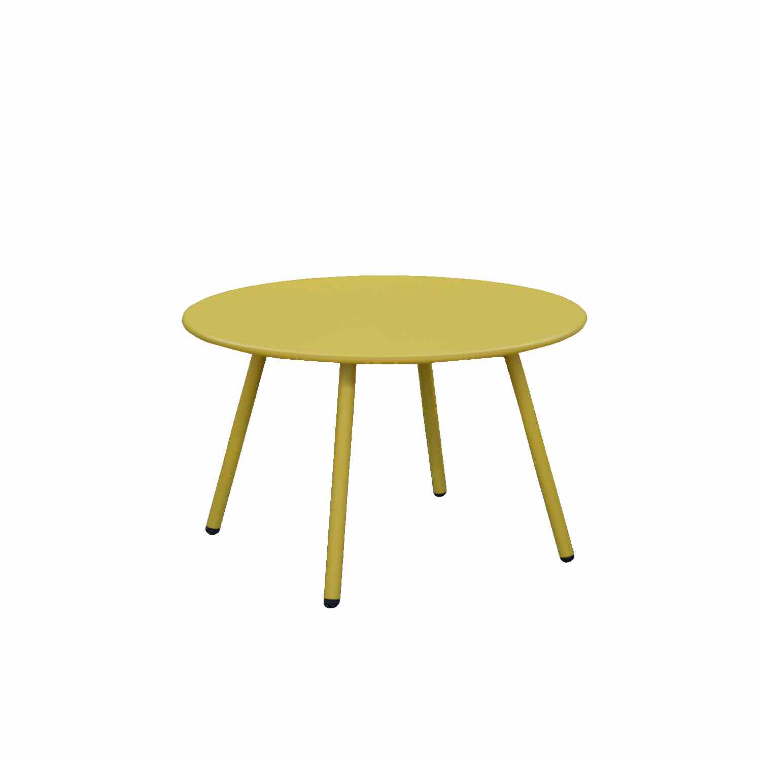 Caractéristiques techniques : table basse ronde en acier avec traitement cataphorèse. Résiste à la pluie et au soleil, elle peut rester en extérieur.